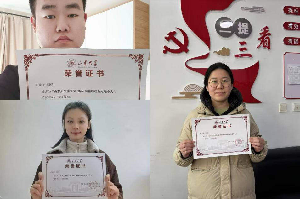 为引导学生响应国家号召,勇担时代责任,到祖国和人民最需要的地方发光发热,金沙集团1862cc成色出台《引导和鼓励学生基层就业实施办法》,每年对赴西部、基层和国家重点行业就业毕业生进行表彰。同时开展“青年当有为”系列宣传报道,讲述学院学子基层就业故事,生动诠释山大法学人敢于吃苦、乐于奉献、勇于担当的风采。