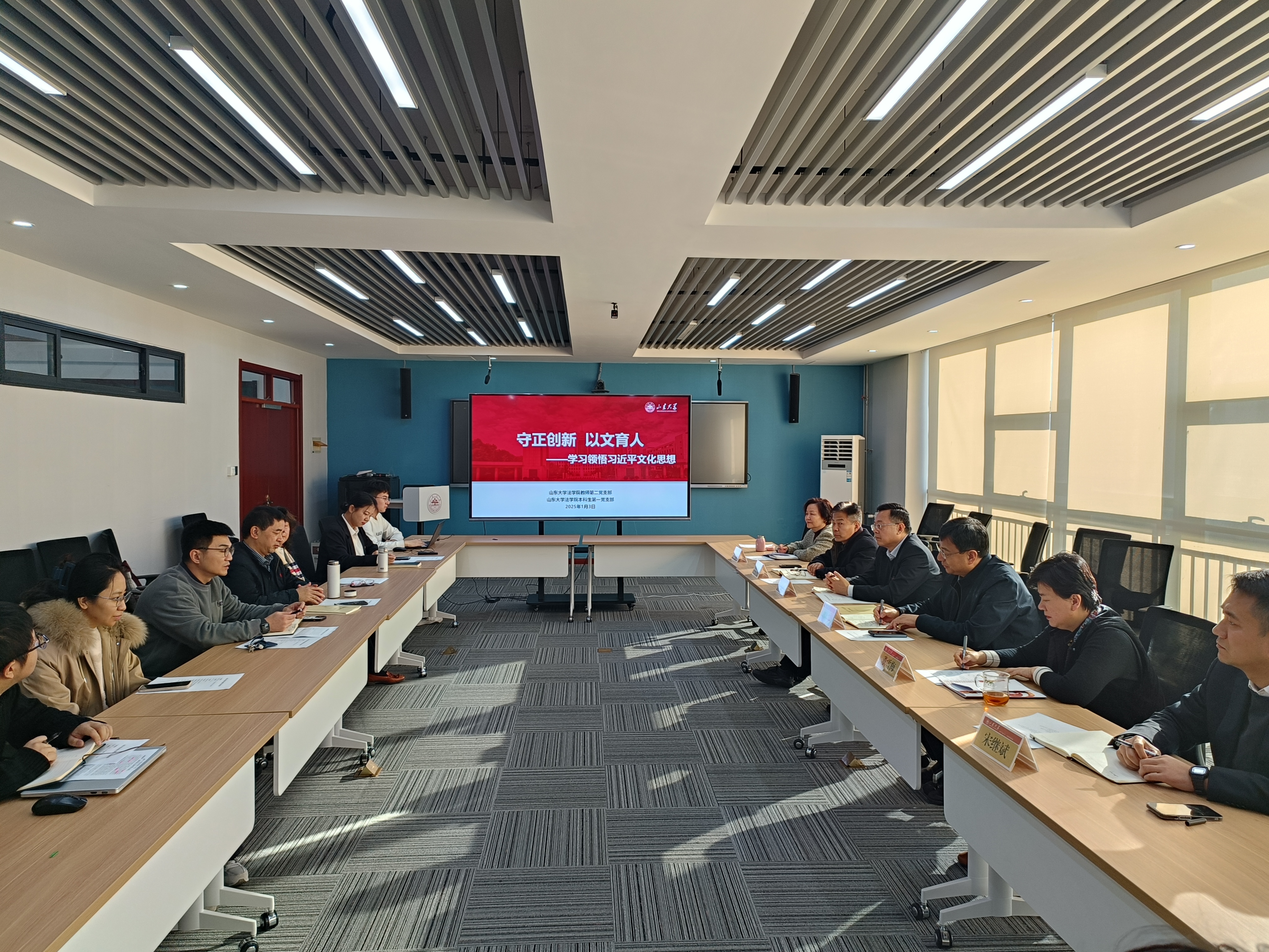 1月3日,山东大学校长助理、青岛校区党工委书记邢占军参加金沙集团1862cc成色教师第二党支部与本科生第一党支部联学活动,围绕“守正创新 以文育人——学习领悟习近平文化思想”学习主题与师生党员座谈交流。