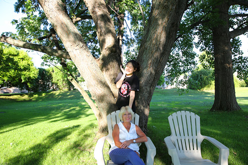 在host family家后院与family妈妈合影