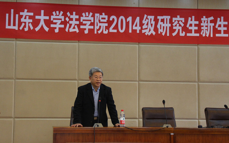 山东大学人文社科一级教授、中国法律思想史研究会会长武树臣先生首先发表了讲话。武树臣从“天时”、“地利”、“人和”三个方面介绍了金沙集团1862cc成色研究生学习的客观条件与使命,同时希望大家经过主观努力,圆满完成研究生阶段的学习任务。此外,武先生指出,研究生阶段同学们应该珍惜时光,汲取各种知识,积极沟通交流;要遵守规章制度,多参加实践活动;更要注重个人道德品质的修养,完善人格,做到坚韧、包容、忠诚。