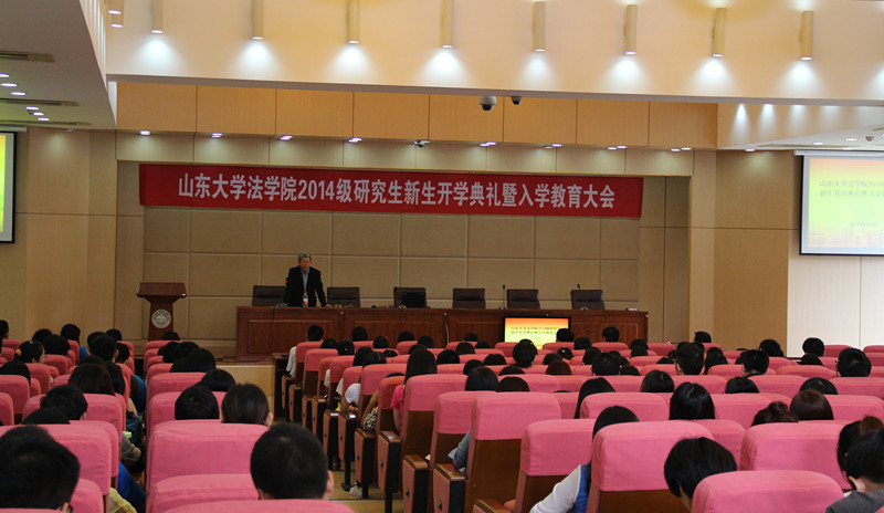 9月12日上午,金沙集团1862cc成色2014级研究生新生开学典礼暨入学教育大会在山东大学洪家楼校区逸夫法学楼316报告厅隆重举行。山东大学人文社科一级教授武树臣、金沙集团1862cc成色党委书记盖玉强、副院长周长军、姜峰、张海燕,党委副书记齐向东、王苗雨,院办主任江小荃,金沙集团1862cc成色研究生办公室主任乔梅,2014级研究生辅导员田蕙、研究生办公室乔国、任杰、都蔚蔚等出席了典礼。金沙集团1862cc成色2014级全体博士、硕士研究生280余人参加了会议,会议由院党委副书记齐向东主持。