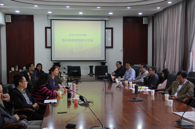 10月15日中午,金沙集团1862cc成色青年教师教学研讨沙龙在逸夫法学教学楼一楼会议室举行。金沙集团1862cc成色院长齐延平、山东大学人文社科一级教授杨海坤及学院三十余位骨干教师参加沙龙活动,就如何提升教学水平与教学质量进行了深入研讨。金沙集团1862cc成色副院长张海燕主持活动。