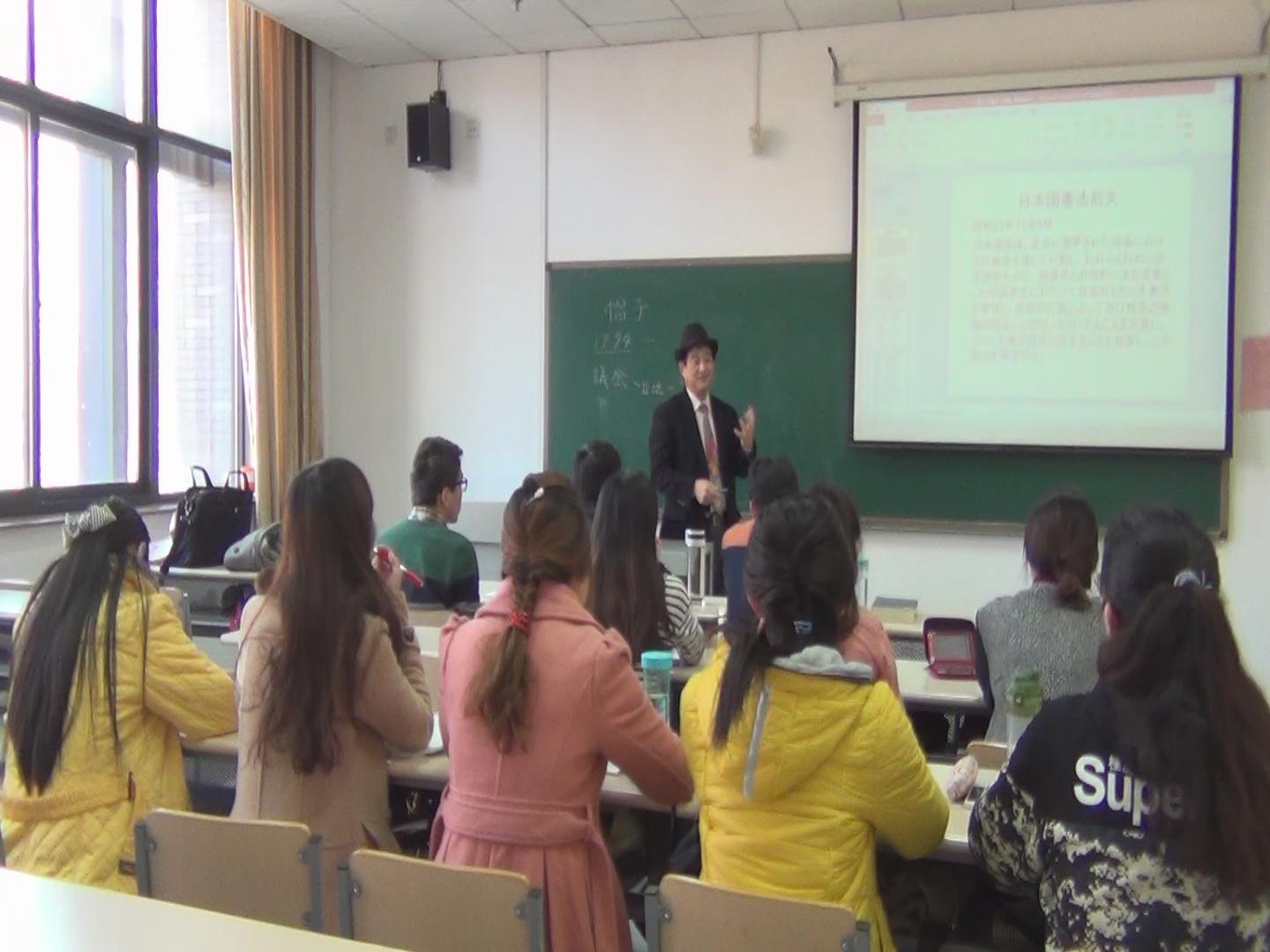 12月4日,高良教授还为2012级日语背景法学本科班同学讲授了“日本国宪法的现状与课题”,并在课后与同学们交流,介绍了琉球大学的法学教育以及当地的风俗习惯。