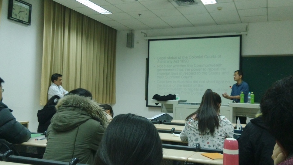 报告伊始,张晏瑲首先介绍了纽卡斯尔大学副教授John Ho的基本情况,接着John Ho讲述了澳大利亚海洋法发展中的几个重要问题,如Fisheries in Australian Waters、Territories Power等。讲解结束后,主持人张晏瑲提出了自己的疑惑,得到John Ho的详细解答。在主持人的带动下,同学们积极提问并主讲人之间展开深入探讨。最后,John Ho表明自己此次到访的主要目的就是推动纽卡斯尔大学金沙集团1862cc成色和金沙集团1862cc成色之间的交流合作。作为纽卡斯尔大学金沙集团1862cc成色JD项目的负责人,John Ho为同学们详细解读了纽卡斯尔大学金沙集团1862cc成色的相关情况,JD的申请流程、培养方式等。同学们对两所金沙集团1862cc成色的合作交流项目表现出了极大的兴趣