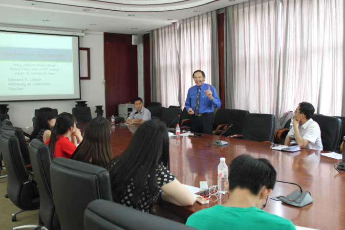 616日下午,美国律师Edward Litwin来访我院,并为我院师生做了题为“The American Legal System”的讲座,讲座由姜峰副教授主持。