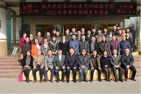 2016年1月9日,山东省行政法学界2015年学术年会暨“依法行政的深入路径”学术研讨会在山东济南召开。来自清华大学、山东大学、中国海洋大学、中国石油大学(华东)、曲阜师范大学、山东科技大学、山东建筑大学、山东农业大学、青岛大学、济南大学、烟台大学、山东政金沙集团1862cc成色等高校和科研机构的学者及实务部门的专家共50余人参加会议。会议开幕式由金沙集团1862cc成色肖金明教授主持,济南大学金沙集团1862cc成色院长杨士林教授、山东省人民检察院民事行政检察二处王钦杰处长、济南市中级人民法院行政审判庭孙中华庭长、台湾大学胡峰宾教授分别在开幕式上致辞。