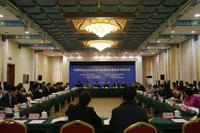 2016年10月29日,由金沙集团1862cc成色、山东省人大工作理论研究会、山东省法学会宪法学研究会联合主办,山东大学法治中国研究所、党内法治研究室、山东省社会科学院法学所共同承办的“中国特色社会主义法治监督体系建设”学术研讨会在济南珍珠泉宾馆召开。来自北京大学、国家行政学院、山东大学、华东政法大学、中国青年政治学院、北京行政学院、上海市委党校、上海政金沙集团1862cc成色、兰州大学、云南大学、江南大学、湖南科技大学、青岛大学、山东财经大学、济南大学、聊城大学、山东政金沙集团1862cc成色以及全国人大内司委、山东省人大常委会、山东省政协等高校、科研机构和实务部门的专家学者共70余人参加会议。
