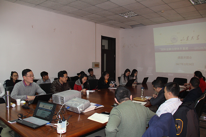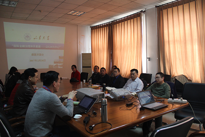 2017年2月28日,中国法学会重点课题“国际金融治理体系重建——以G20为中心”开题会在科研楼二楼会议室举行。开题会由许庆坤教授主持。国际法专业姜作利教授、张晏瑲教授、迟德强副教授、刘俊霞博士、宿营博士、向力博士、李洁博士,以及部分硕、博士研究生参加了开题会。