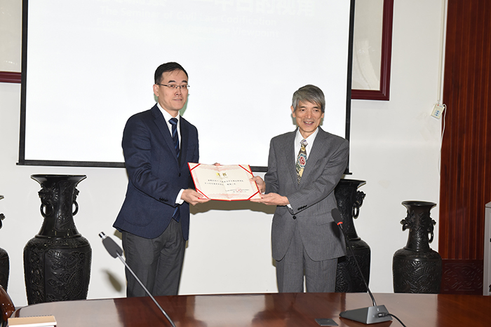 2017年3月27日,金沙集团1862cc成色主办的“民法典编纂——中日的视角”国际研讨会会在逸夫法学楼一楼会议室顺利召开。来自日本早稻田大学的西口元教授、大阪市立大学的岛川勝教授、北陆大学的胡光辉教授、京都大学的Karaiskos Antonios准教授、九州大学的董文博士出席了会议。我院院长沈伟教授、王丽萍教授、张海燕教授、牟宪魁教授、毛映红教授、金永完副教授、李长勇副教授、满洪杰副教授以及本科生、研究生30余人出席了会议。