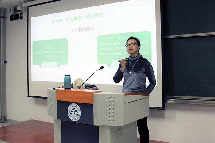 4月5日,民法总则解读讲座在青岛校区振声苑举办,由王丽萍教授和刘宏渭副教授共同讲解。