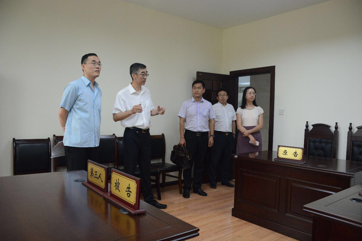 张林主任带领沈伟院长和姜峰副院长参观了律师事务所内设的模拟法庭,并且介绍了海鲲律师事务所的发展方向和目标。沈伟院长代表金沙集团1862cc成色师生对海鲲律师事务所的慷慨义举表示感谢,期待金沙集团1862cc成色和海鲲律师事务所的战略合作能够取得累累硕果。