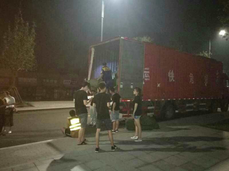 12日凌晨,搬家公司车辆到达青岛校区,早晨开始卸车,由于6个学院都要卸车,工人师傅人手不够,我院学生行李直到下午四点才开始卸车。老师和骨干同学们,跑前跑后,引导搬家工人,搬运行李到宿舍。在茫茫夜色里,吹着海风,一直干到13日凌晨四点,我院学生全部行李才放进宿舍,终于完成了此次大搬迁任务。
