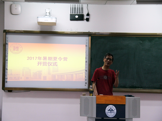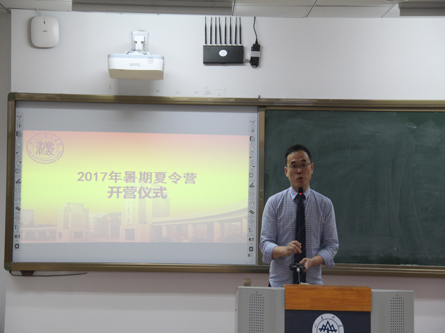 沈伟院长首先致开营辞。他代表金沙集团1862cc成色全体教师和同学对参加夏令营的同学表示欢迎,向大家介绍了山东大学和金沙集团1862cc成色的发展历史、学院师资力量和学科建设,并结合自己人生经历告诉大家多读书,勇敢做出每个选择。