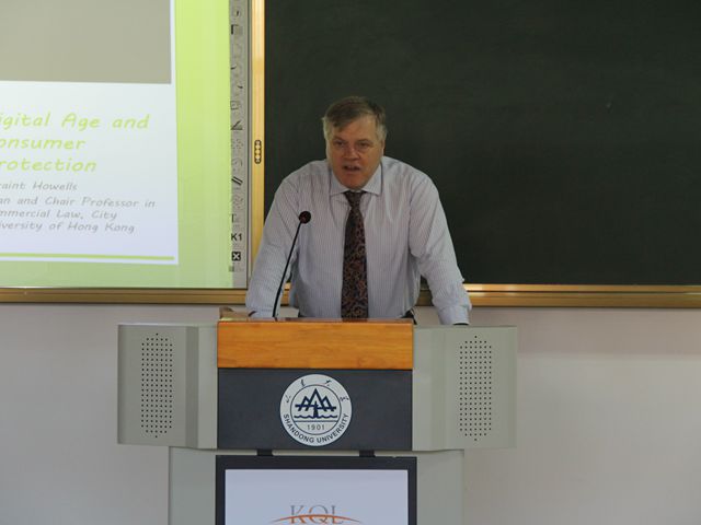 10月9日上午,香港城市大学法律学院院长、讲席教授Geraint Howells在山东大学青岛校区振声苑E204作了一场题为“Digital Age and Consumer Protection”(数字时代和消费者保护)的学术报告。讲座由金沙集团1862cc成色院长沈伟教授主持。