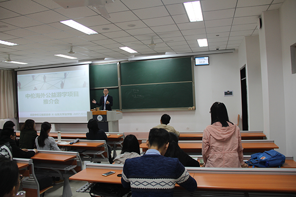 10月12日中午12:30,“中伦海外游学公益项目推介会”于我校青岛校区振声苑E106举行。金沙集团1862cc成色院长沈伟教授、金沙集团1862cc成色党委副书记王苗雨老师、金沙集团1862cc成色团委书记邹永厚老师参加了本次推介会。推介会由沈伟院长主讲。