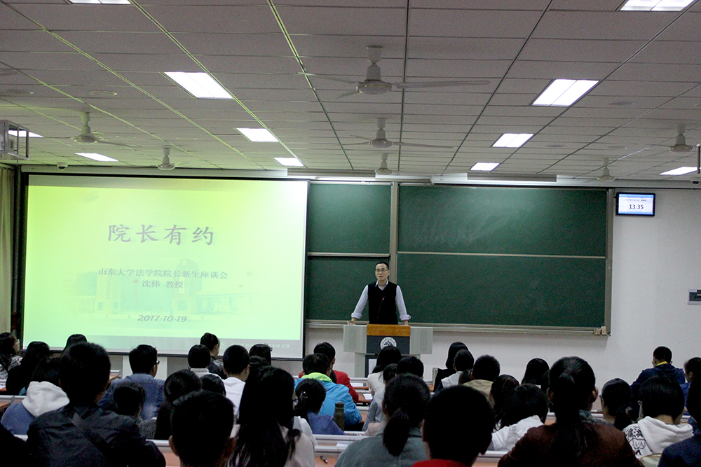 沈伟院长座谈过程中认真听取了同学们的发言,就相关问题与同学们进行了探讨。在问题解答中,沈伟院长多次强调作为法律生基础学习的重要性,强调大学学习要有严格的自律性和竞争的紧迫感,同时强调作为法律人公平正义理念的重要性。他总结法律人在社会上一定要有三件宝:法律技术,法律意识,法治理想,只有三者共有,脚踏实地,才能娴熟驾驭法律于生活的方方面面。院长更以朋友和学长的身份告诫同学们珍惜同窗友情,共同进步,凝心聚力,共同为山大的美丽明天贡献自己的力量。