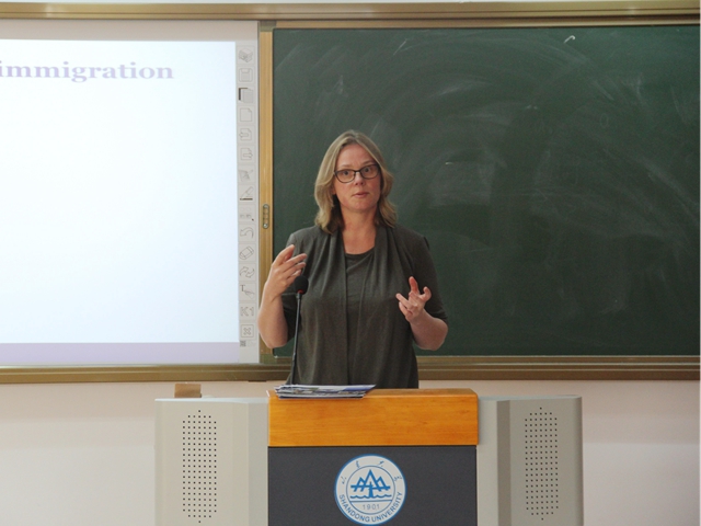 讲座伊始,Dr. Meeteren首先对“移民刑事法律”这个概念做出了解释。“crimmigration”是一个合成词, 由“crime”和“migration”结合而来。显而易见,对“crimmigration”这个术语的理解就是犯罪治理和移民管理交叉重叠的部分,我们称之为“移民刑事法律”。她强调,移民问题、犯罪问题和惩治问题早在几十年前就是欧洲以及美国学界讨论研究的领域,直到今天,人们也未达成统一的意见。随后,Dr. Meeteren开始正式介绍莱顿大学在相关领域的研究成果。莱顿大学的研究主要从三个角度进行:刑事制裁系统和移民管理系统的角度、社会的角度、移民群体的角度。就刑事制裁系统和移民管理系统的角度,Dr. Meeteren介绍了其法律依据、执行以及程序问题;从社会的角度来讲,移民问题确实引发了争议;而刑事法律和刑事控制目的在于规制行为,保护个人权利和保障社会秩序,移民群体在这些方面为社会带来了挑战。 最后,Dr. Meeteren提到我们在研究移民刑事法律问题时,应当注意以下要素:边境控制,移民服务,接收寻求政治避难者以及遣返,与之相关的国家机关,如公安部门、检察部门、法院以及矫正系统等都应当参与到移民刑事法律之中。