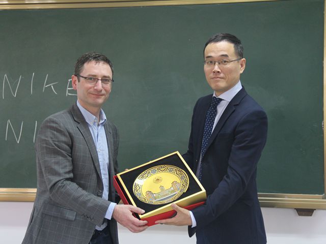 讲座开始,沈伟院长感谢康桥律师事务所对本次活动的支持,并代表金沙集团1862cc成色向Burrell教授赠送了纪念品。