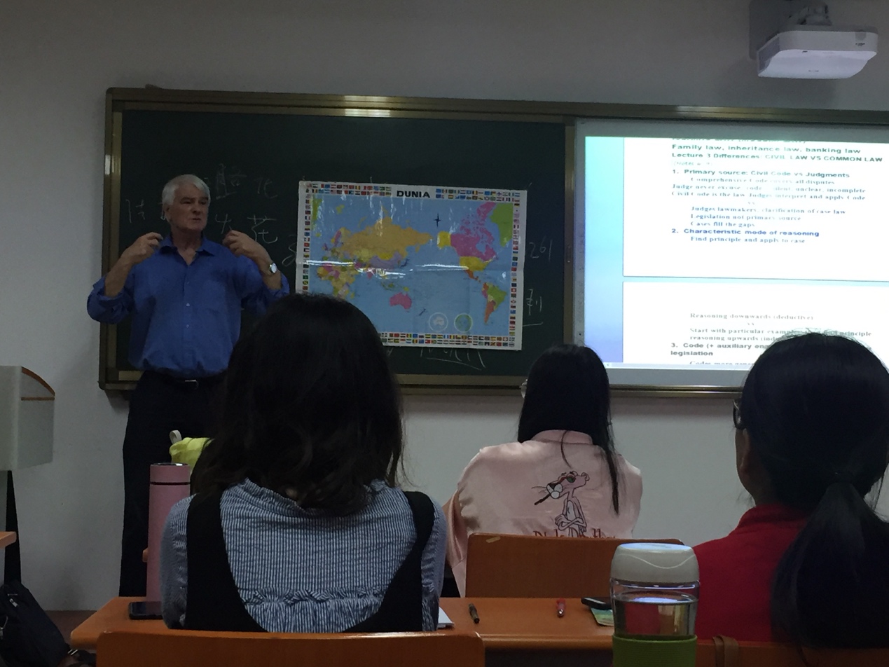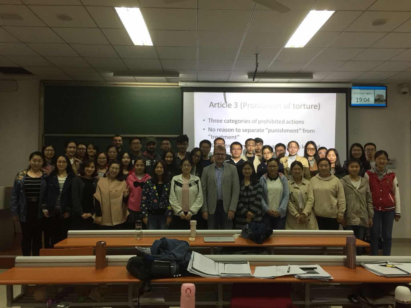 2017年10月6日至10月20日,来自南非斯坦棱布什大学的教授Cornie van der Merwe和来自挪威卑尔根大学的教授BORVIK BJøRNAR为我院本科生、研究生教授了物权法和人权法。