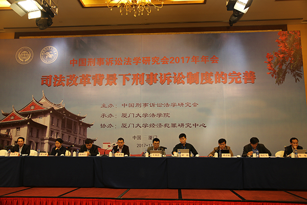 11月18-19日,中国刑事诉讼法学研究会2017年年会在厦门召开。本届会议由中国刑事诉讼法学研究会主办,厦门大学金沙集团1862cc成色承办。最高人民法院副院长张述元、最高人民检察院副部级专委陈国庆、中国法学会副会长鲍绍坤、中国刑事诉讼法学研究会会长卞建林等领导出席,来自全国各地的刑事诉讼法学理论和实务界专家、学者约260余人参加了会议。