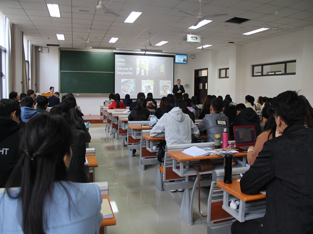 首先,主讲人Michael P. Scharf教授和Joseph C. Hostetler教授一起向同学们展示了美国凯斯西储大学的基本情况和特色。据介绍,凯斯西储大学是美国一所私立研究型大学,其开设的法律类等专业享有很高的业界认可度,培养了诸多杰出的法律工作者。其中,凯斯西储大学的LLM项目被《国际法学家》评选为全美在学术和学生体验方面最为优秀的法学硕士项目之一。接着,Michael P. Scharf教授向大家介绍了凯斯西储大学的留学项目和学位设置等概况,该校为LLM项目特别开设了四个研究方向,分别是:美国法和全球法律研究(U.S. and Global Legal Studies)、国际商法(International Business Law)、知识产权法(Intellectual Property Law)、国际刑法(International Criminal Law)。最后,Michael P. Scharf教授介绍到,凯斯西储大学的校园环境优美、周边交通便捷、校友资源遍布全球各地,为学生提供了大量的资源与机会。