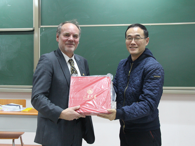 在讲座的提问环节,Asbjorn Strandbakken教授耐心解答了在座同学的问题,现场氛围热烈,同学们在该次讲座中受益颇多。讲座结束后,沈伟教授代表金沙集团1862cc成色向Asbjorn Strandbakken教授赠送了山东大学纪念托盘,期待两院合作取得积极进展。