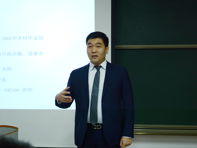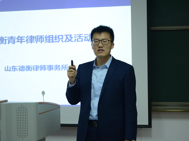 2017年12月25日下午13点30分,德衡律师集团高级合伙人王鹏飞律师,德衡律师集团合伙人李修超律师、潘峰律师、王隽律师、经纬律师在山东大学青岛校区振声苑E201举行了一场题为“德衡律师的律法时光暨德衡律师集团律政新人招募宣讲会”的讲座。本次讲座由金沙集团1862cc成色辅导员曲仪老师主持。