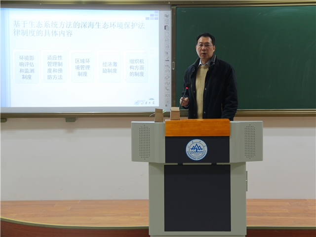 第一部分,张超同学讲述了国际海底区域的基本知识,具体阐述了海底区域法律制度的历史沿革,区域矿产资源的基本情况,三种不同深海矿产资源开发对生态环境的影响等。第二部分,张超同学基于生态系统方法的深海生态环境保护法律制度,具体论述了生态系统方法的客观性、主观性和手段的适当性。第三部分,张超同学讲述了基于生态系统方法的深海生态环境保护法律制度的具体内容,分为环境影响评估和监测制度、适应性管理制度和方法、区域环境管理制度、经济激励机制、组织机构方面的制度等五个方面,并讲述了区域现有的生态环境保护法律制度,着重介绍了国际海底管理局“开采规章草案”的改进和完善。