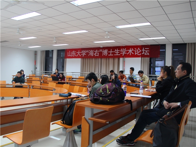 2018年4月17日下午18点30分,由山东大学研究生院、党委研究生工作部主办、金沙集团1862cc成色承办的研究生特色学术活动品牌2018年第4期(总611期)“海右”博士生学术论坛在青岛校区振声苑E206室如期举办。此次论坛邀请了张超博士生作为报告人,金沙集团1862cc成色副教授、硕士研究生导师戴宗翰教授作为点评嘉宾出席了本次论坛。