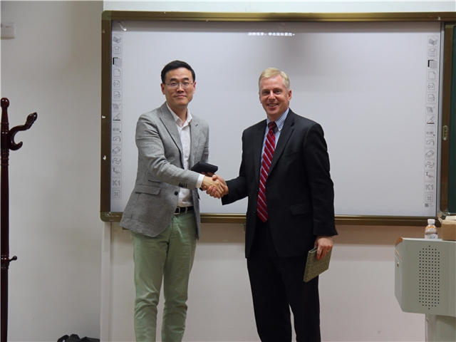 沈伟院长在讲座结束前,再次感谢两位嘉宾的造访,并向两位嘉宾赠送了山东大学纪念品。