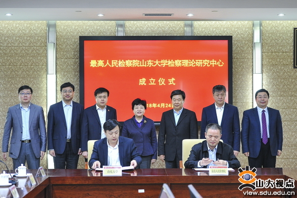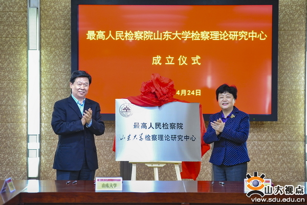 4月24日,最高人民检察院山东大学检察理论研究中心成立仪式在山东大学举行。最高人民检察院党组成员、副检察长徐显明,山东大学校长樊丽明出席会议并共同为中心揭牌。最高人民检察院检察理论研究所所长谢鹏程、山东大学常务副校长王琪珑参加仪式。