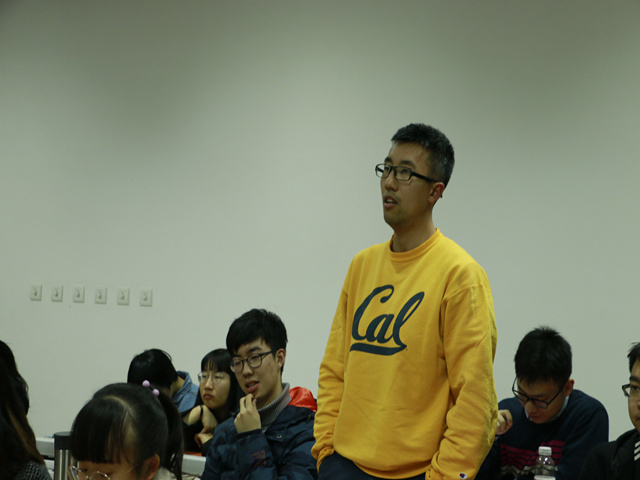 第一部分,Machiko Kanetake博士通过展示机器人题材的灾难电影图片和视频引出今天的主题——杀人机器人,并以“从伦理和政治角度来看,杀人机器人是否应该被禁止”这个问题引发在场师生深入思考和讨论。其中来自2014级法律英语班的孟令涛同学阐述了自己的观点,他认为杀人机器人只是一种工具,我们应该禁止的是不恰当地应用杀人机器人而非此工具本身。随后,有观众从“情感”的角度表达了自己的看法,她指出因为人类更容易被情感影响,所以在利用武器伤害的时候比机器人更怕犯错,因而会在使用时更为小心。
