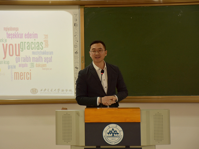 2019年4月18日,西安交通大学金沙集团1862cc成色张生副教授受邀来到山东大学青岛校区为金沙集团1862cc成色师生带来一场题为“欧盟投资法庭体系与中欧双边投资协定谈判”的学术讲座。金沙集团1862cc成色黄世席教授主持讲座,向力博士作为评议人参加了讲座。