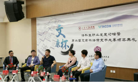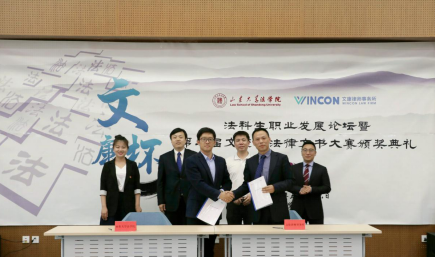 5月26日,法科生职业发展论坛暨第二届“文康杯”法律文书竞赛颁奖典礼在我院举行。院长周长军、副院长满洪杰、党委副书记邹永厚,青岛市司法局普法办专职副主任冯思睿,文康律师事务所高级合伙人高良臣,合伙人、商事诉讼部主任董杰,山东省人民检察院刘常通、青岛市人民检察院程明、青岛市中级人民法院宿敏、李沧区人民法院于美玲、北京中航泰达环保科技股份有限公司法务总经理李政等校友出席了活动。活动由学院团委副书记曲仪主持。