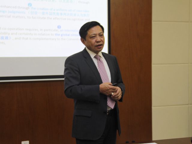 2019年10月8日,外交学院卢松教授和上海政金沙集团1862cc成色国际金沙集团1862cc成色特聘院长徐国建教授做客金沙集团1862cc成色,分别进行了题为“仲裁:实践中是如何操作的”及“建立法院判决全球流通制度——《2019年海牙判决公约》的内容和意义”的学术报告。本场报告由黄世席教授主持,李洁博士和向力博士作为与谈人出席了讲座。