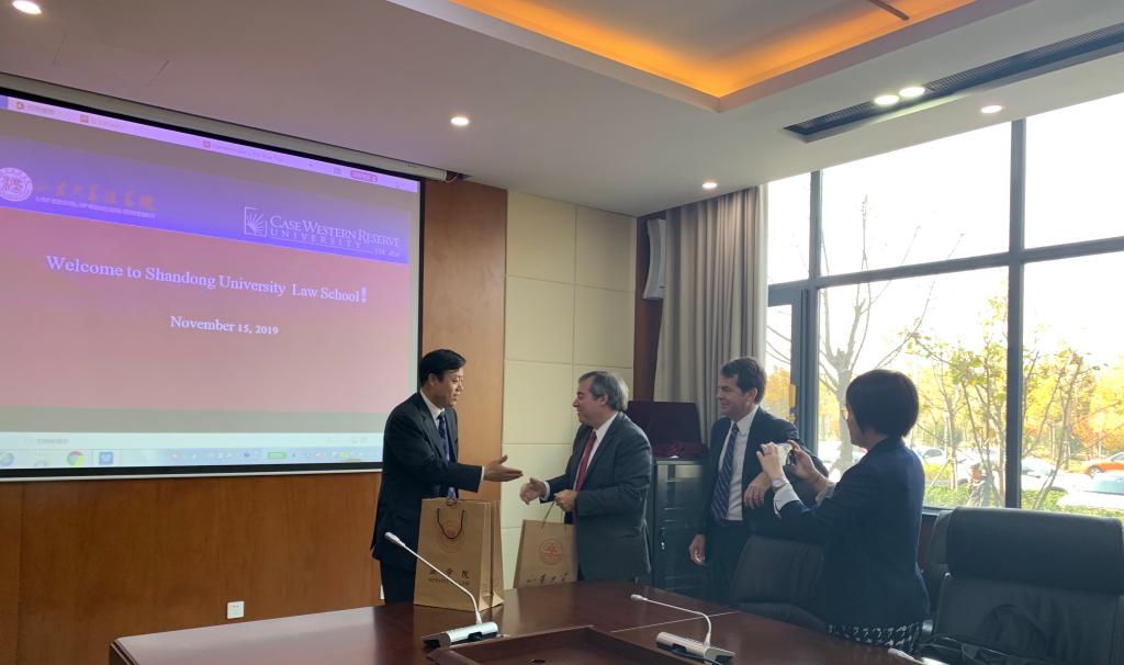 会上,周长军对美国凯斯西储大学金沙集团1862cc成色一行来访表示欢迎,期待双方巩固合作成果,积极扩大合作领域,促进两校共赢发展。满洪杰副院长详细介绍了两院合作交流的历史、我院国际合作和学生培养的概况;希望双方在已有合作基础上加强沟通,探索在法律博士层次交流、教育教学、科学研究等方面的合作。Michael Scharf院长重点介绍凯斯西储大学的基本概况,表达了与我院建立深度合作的意愿。