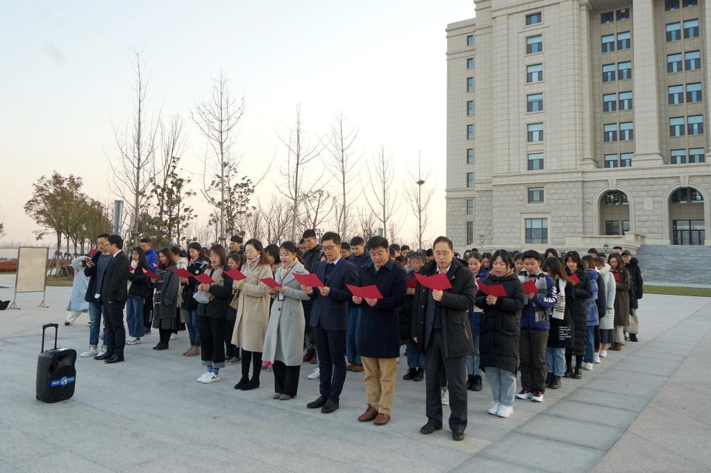 组织宪法晨读,弘扬宪法精神。12月4日,青岛校区育贤广场举行以“弘扬宪法精神,厚植爱国主义情怀”为主题的国家宪法日升国旗仪式暨宪法晨读活动,现场师生在国旗下进行宪法宣誓、诵读宪法条文。青岛校区党工委副书记、纪工委书记兼金沙集团1862cc成色党委书记杜言敏出席活动,校区党工委政工处处长李延成、金沙集团1862cc成色党委副书记邹永厚以及各学院师生代表200余人参加了活动。部分师生代表集中观看教育系统国家宪法日“宪法晨读”活动直播,在教育部党组成员、副部长田学军领读下,同步参与宪法晨读活动,感悟宪法精神、增强宪法意识。