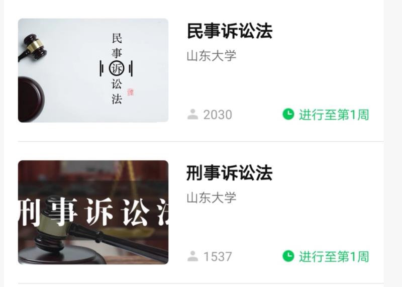 近日,由我院周长军教授和张海燕教授分别担任课程负责人的《刑事诉讼法》和《民事诉讼法》两门法学核心课程在中国大学MOOC”线上开课。开课第一周,两门课程分别已有1500余人、2000余人在线参加学习,社会反响良好。疫情防控期间,学院积极践行“停课不停教、停课不停学”的教学理念,组织老师们通过各类在线教学软件如期开展线上教学,同时积极鼓励老师通过开展慕课线上教学,为法学专业的学生居家线上学习提供方便,达到了疫情防控和线上教学“两手抓、两手硬、两促进”的目标。