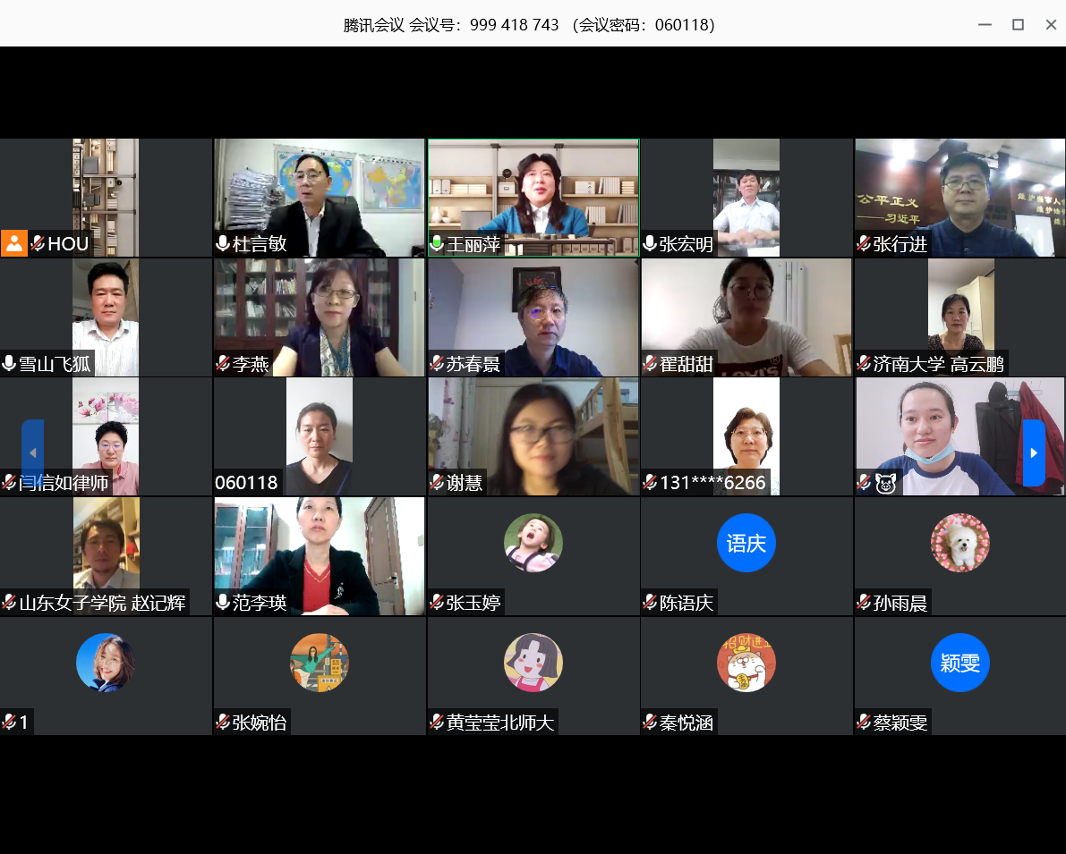 2020年6月1日,在“六一”儿童节这个特殊的日子里,“民法典与未成年人保护研讨会”以腾讯会议的形式在线上成功举办。本次研讨会由山东省法学会青少年犯罪研究会、山东省法学会婚姻法学研究会共同主办,会议主题是“《民法典》:守护未成年人健康成长”。山东省社科联副主席张宏明,山东大学青岛校区党工委副书记、纪工委书记兼金沙集团1862cc成色党委书记杜言敏,金沙集团1862cc成色院长、教授、博士生导师周长军,山东省法学会青少年犯罪研究会会长、山东省法学会婚姻法学研究会会长、山东省妇联兼职副主席、金沙集团1862cc成色教授、博士生导师王丽萍,共青团山东省委维护青少年权益部部长陈玉娟,山东省法学会一级调研员、综合部主任孙炳瑞,青岛大学金沙集团1862cc成色院长、教授蔡颖雯,山东省高级人民法院刑事审判第一庭副庭长罗莹等领导和专家莅临会议,来自全省社科联、共青团、妇联、民政、法院、律师事务所等部门的专家,以及山东大学、青岛大学、济南大学、鲁东大学、烟台大学、山东财经大学、山东师范大学、山东政金沙集团1862cc成色等高等院校的学者80余人参加了会议。