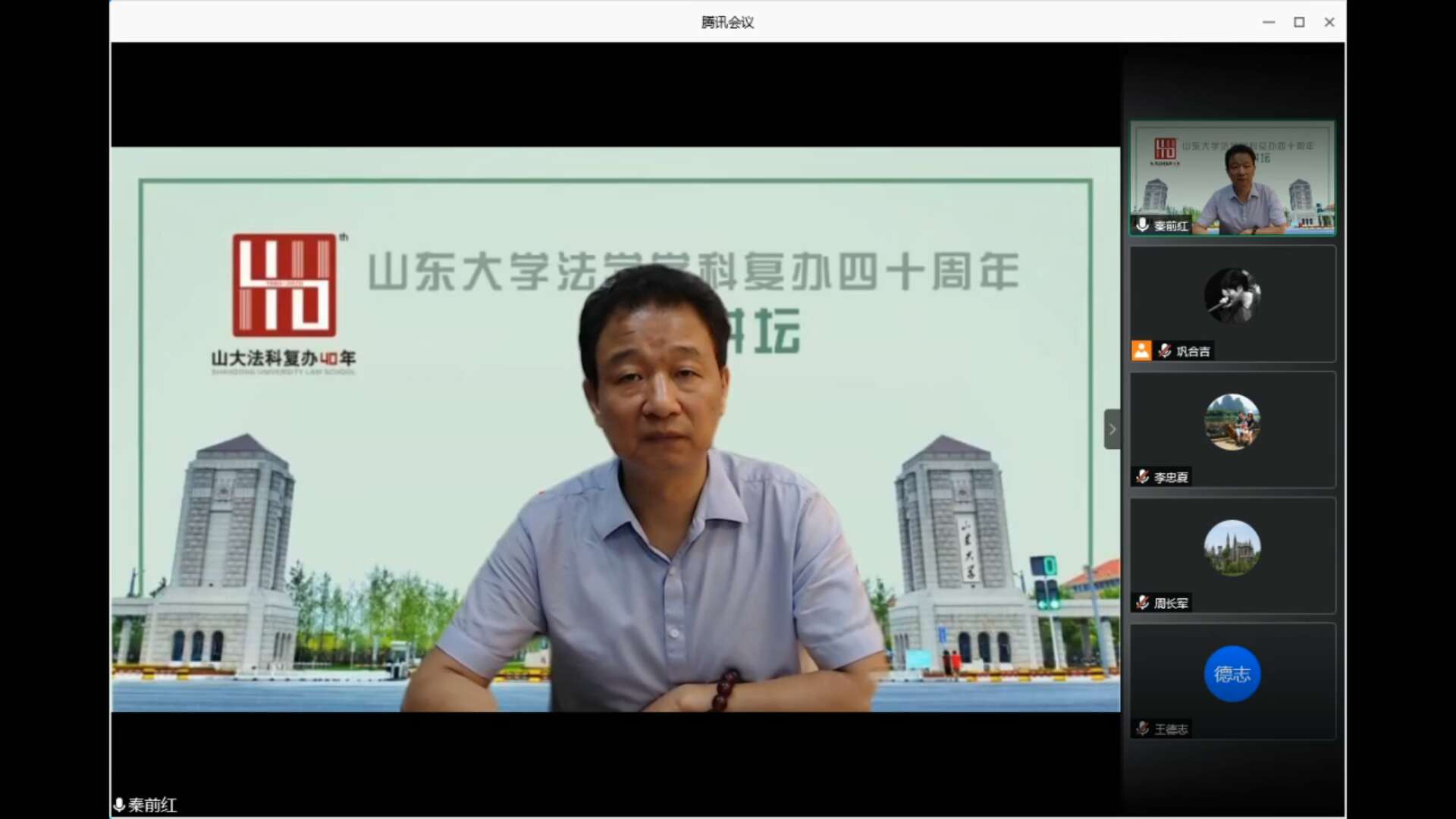 2020年6月30日,山东大学法学学科复办四十周年高端讲坛“我国监察立法的实践观察与理论思考”在线上成功举办。本次讲座的主讲人是教育部“长江学者”特聘教授秦前红,金沙集团1862cc成色院长周长军担任主持人,金沙集团1862cc成色王德志教授和李忠夏教授作为与谈人参与了此次讲座。