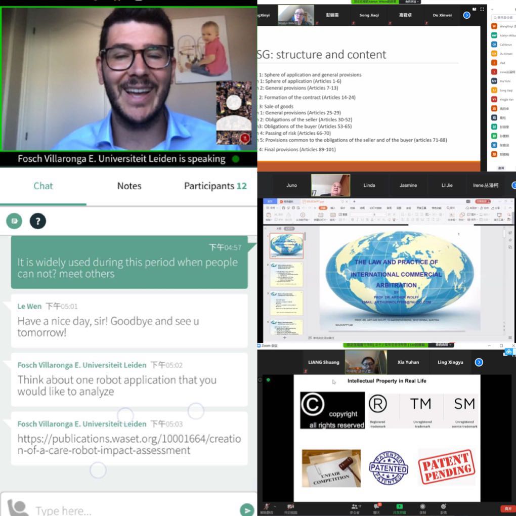 7月6日,荷兰莱顿大学Eduard Fosch-Villaronga教授主讲的全英文课程“机器人法律与规制”、韩国高丽大学李大熙教授主讲的“知识产权法、个人信息保护法”分别在Kaltura、Zoom开讲,拉开了金沙集团1862cc成色2020年国际暑期学校项目系列海外师资课程的序幕。
