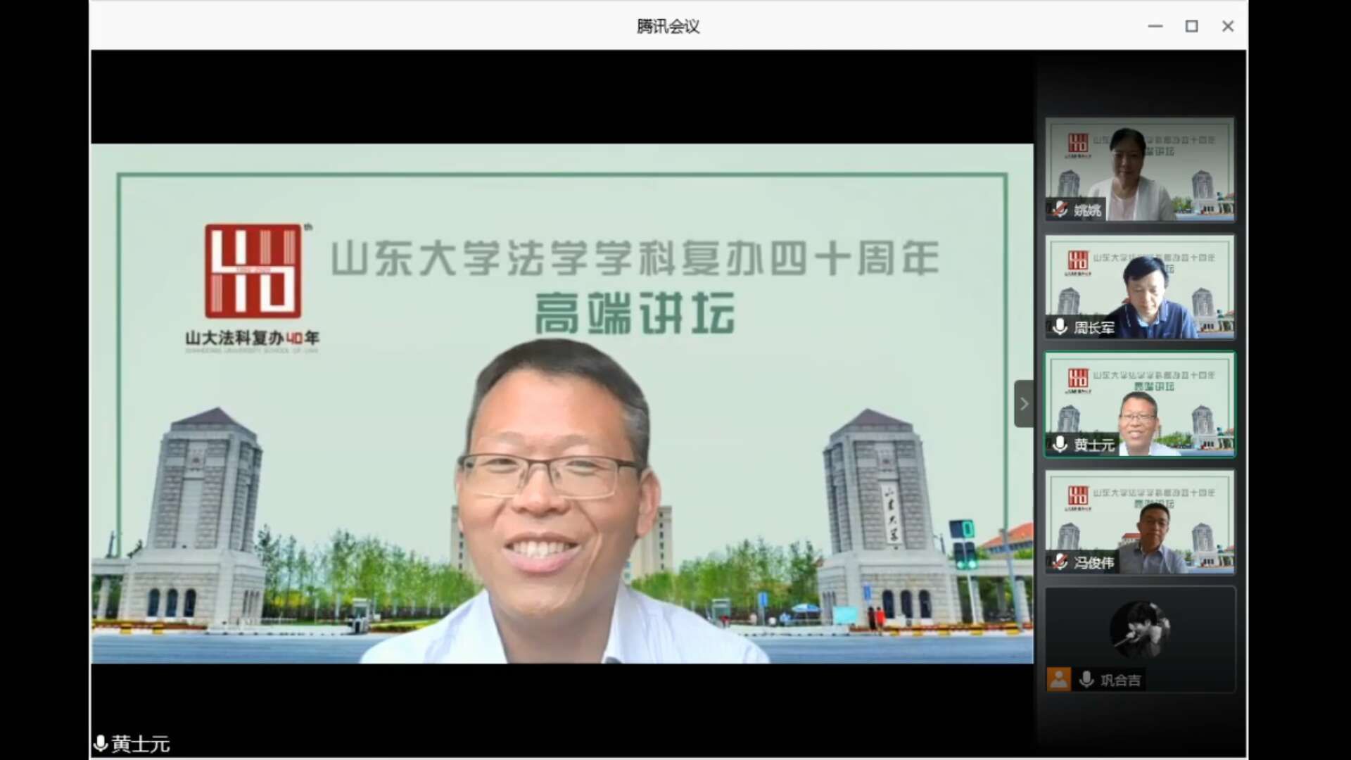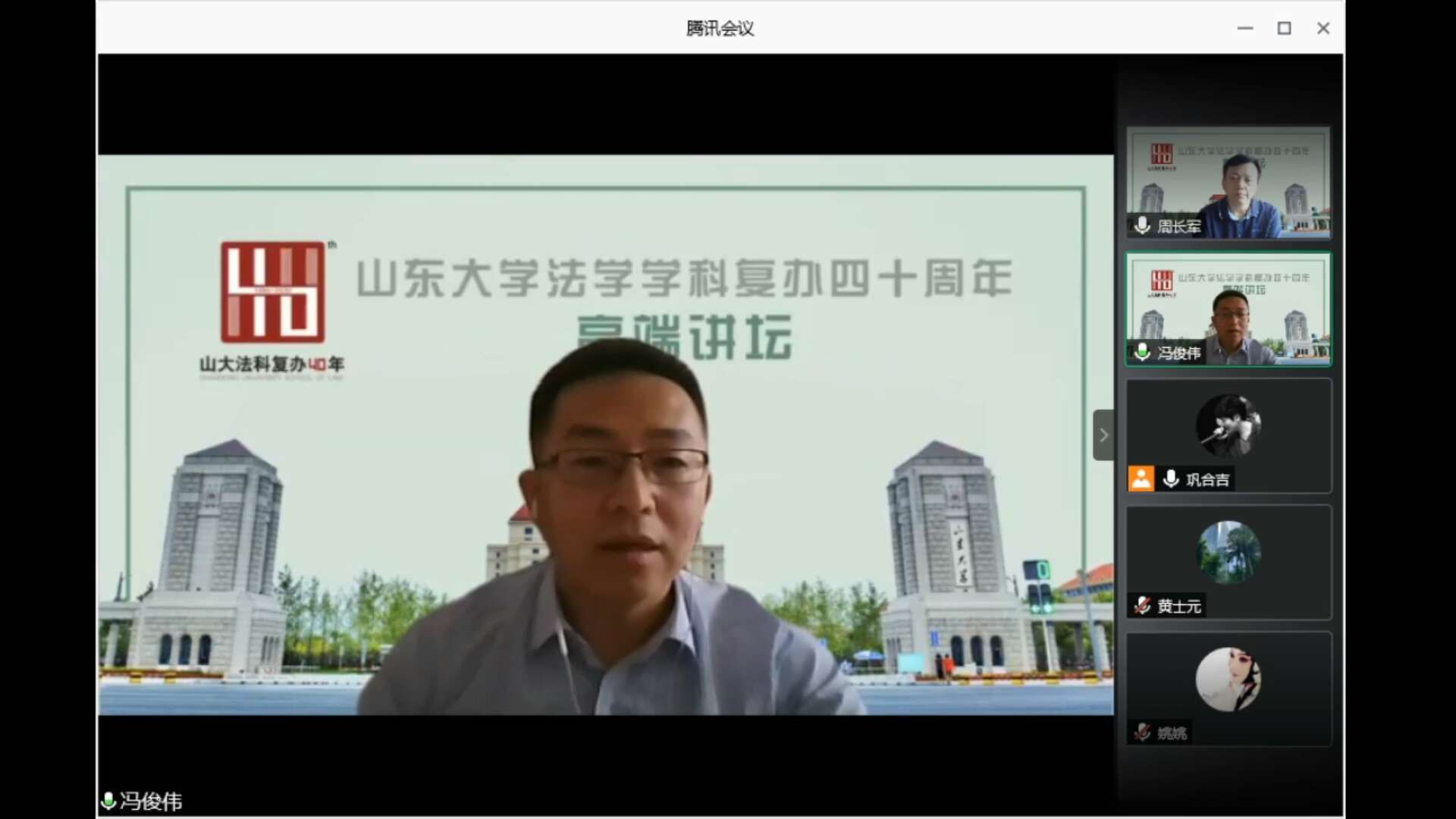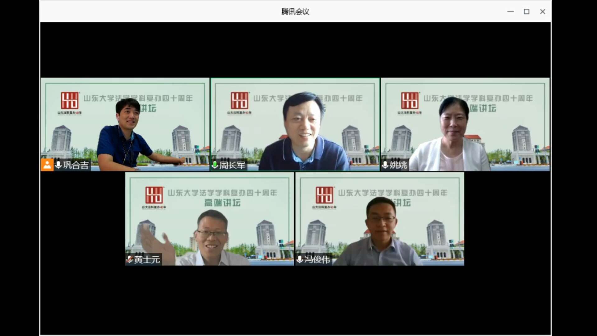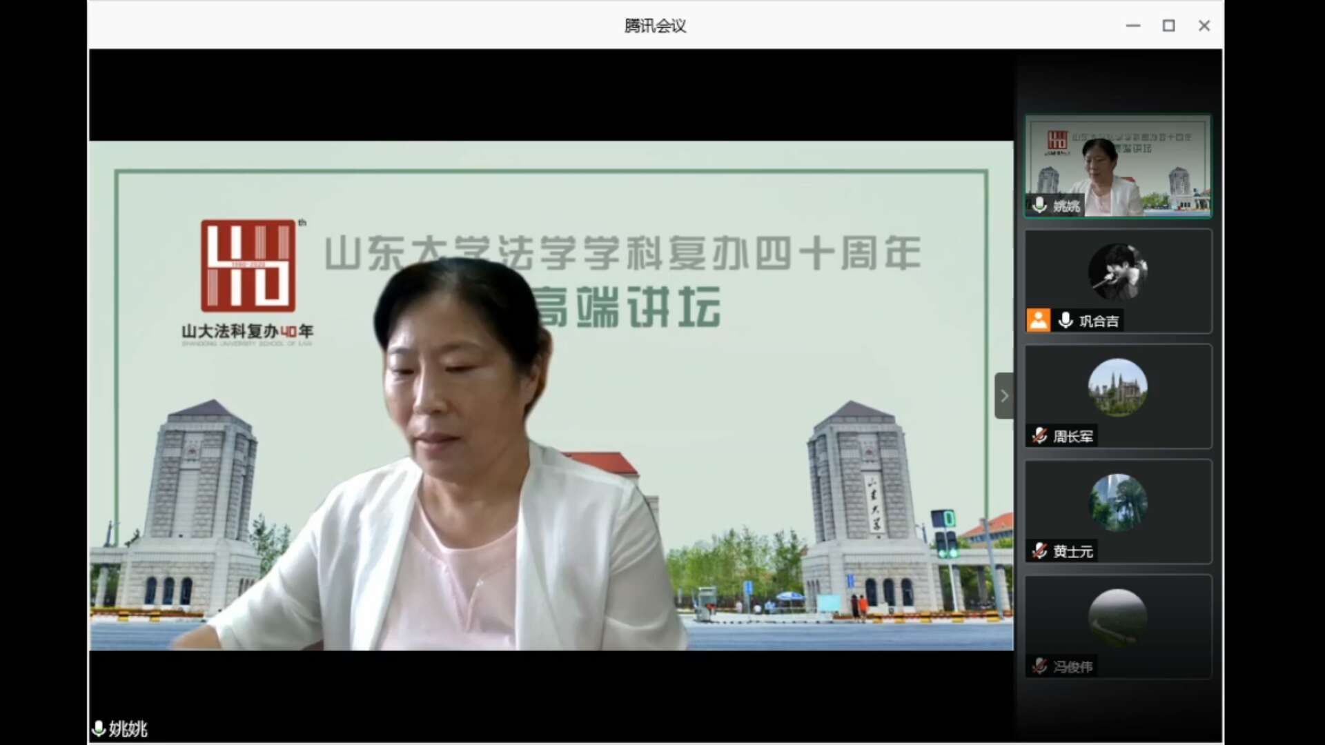 2020年7月16日下午,山东大学法学学科复办四十周年高端讲坛于线上成功举办,中南财经政法大学副校长姚莉教授做了题为“监察法证据制度的理解与适用”的报告。本次讲座由金沙集团1862cc成色院长周长军教授主持,金沙集团1862cc成色黄士元教授、冯俊伟教授作为与谈人参与了此次讲座。