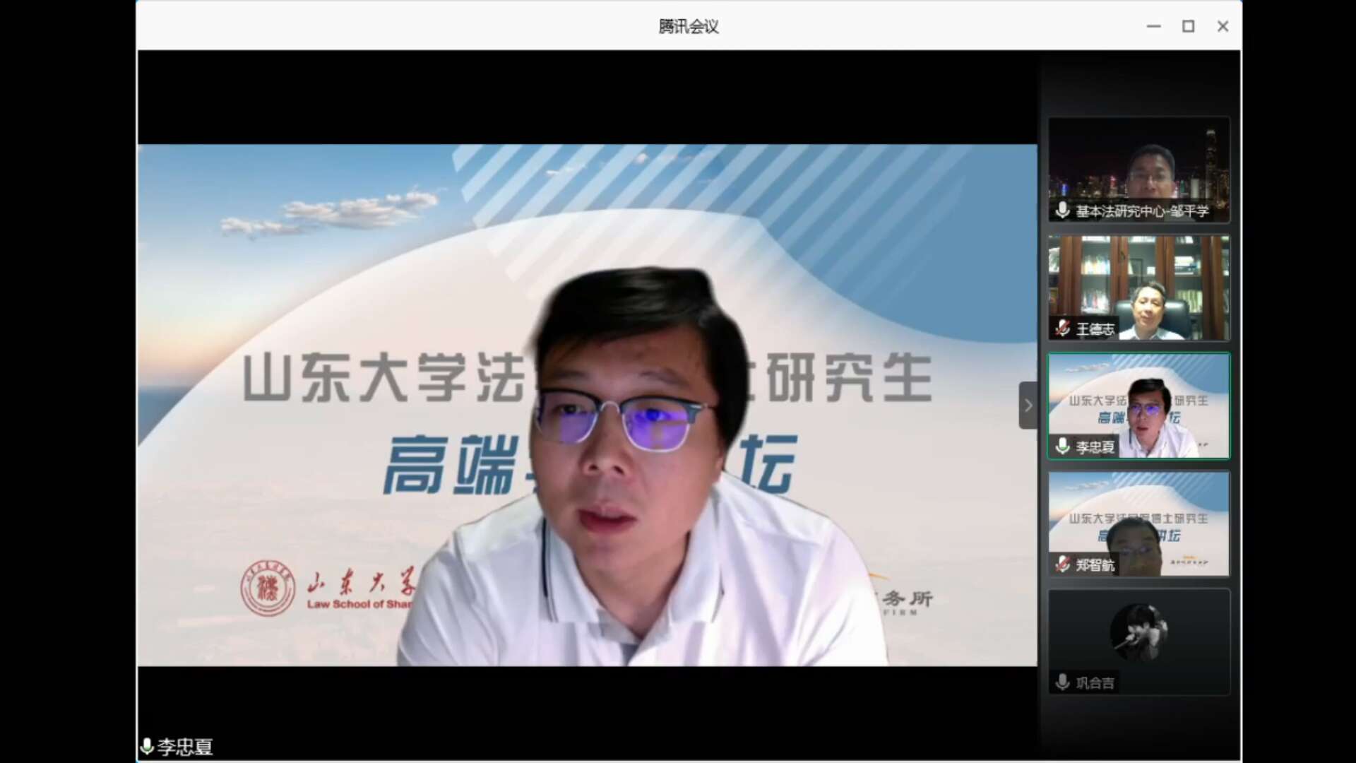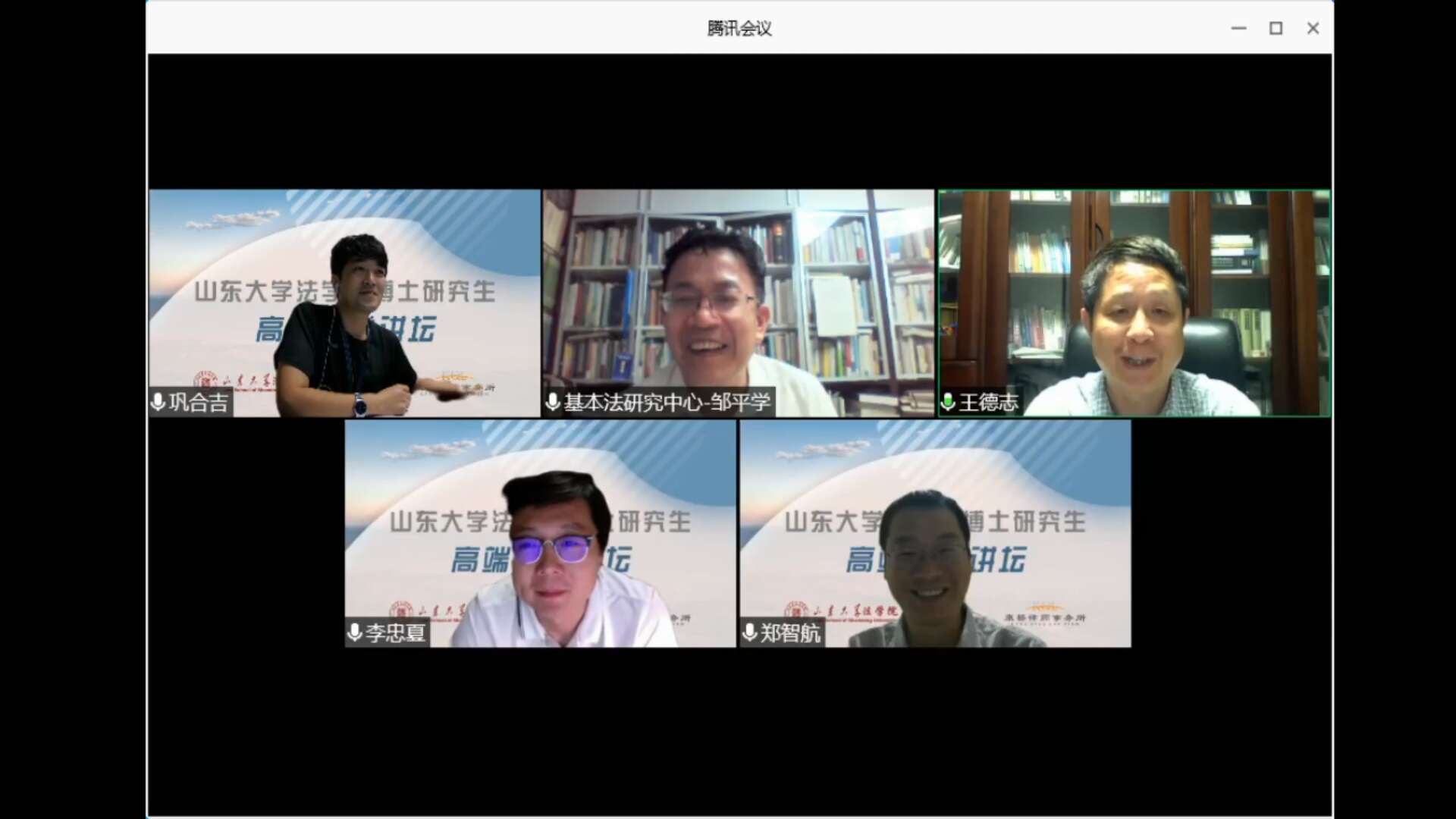 2020年7月18日晚,金沙集团1862cc成色博士研究生高端学术讲坛于线上成功举办,深圳大学港澳基本法研究中心主任邹平学教授以“港区国安法解读”为题作了一场精彩的报告。讲座由金沙集团1862cc成色王德志教授主持,金沙集团1862cc成色李忠夏教授、郑智航教授作为与谈人参与了此次讲座。