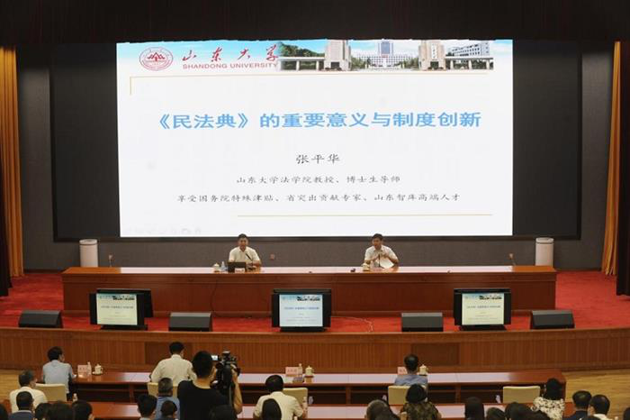 7月29日,山东省委宣传部举办部理论中心组学习暨“宣传干部讲座”,我院张平华教授围绕深入学习贯彻党的十九届四中全会精神和《中华人民共和国民法典》作辅导报告。省委宣传部分管日常工作的副部长、省文明办主任王红勇等领导班子成员和机关处室、事业单位全体党员干部参加报告会。