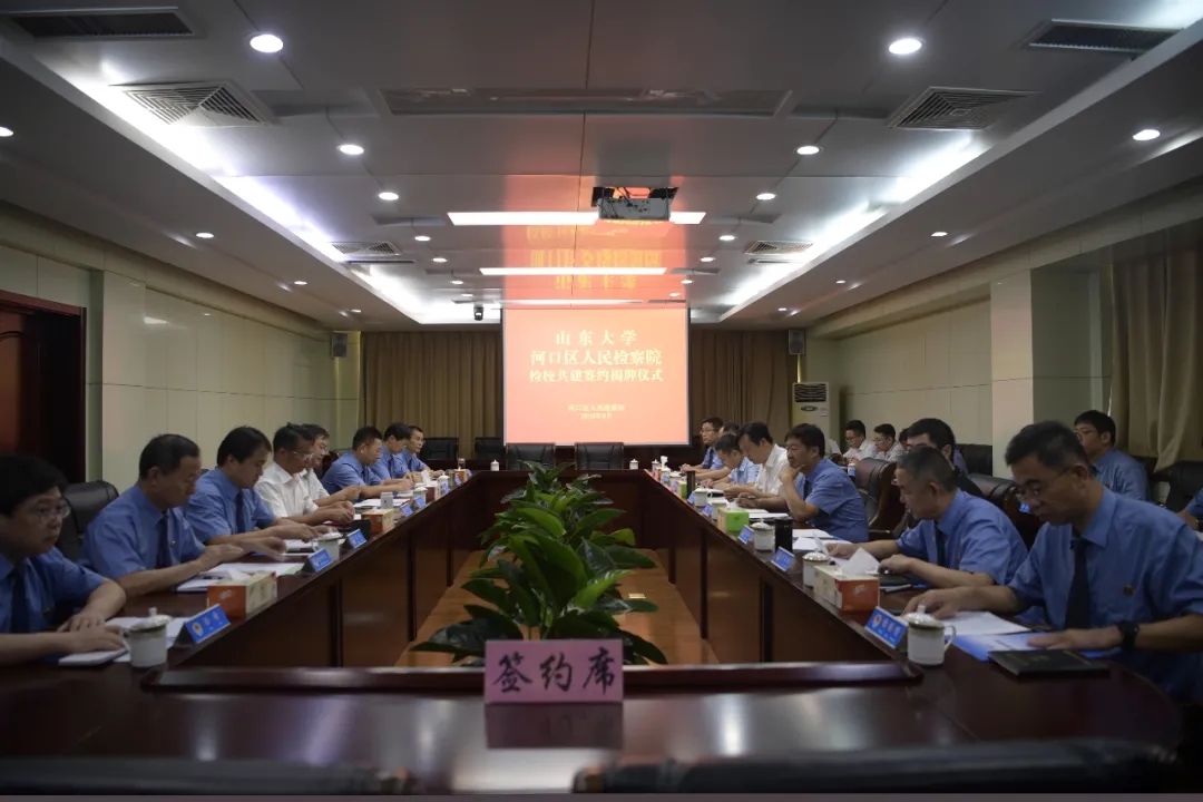 签约仪式上,周长军院长与束斌检察长分别代表山东大学、河口区人民检察院签署了检校合作协议。王鹏主任、丁西超检察长与周长军院长、满洪杰副院长、郑智航副院长就检校合作共建具体方案进行了座谈交流。