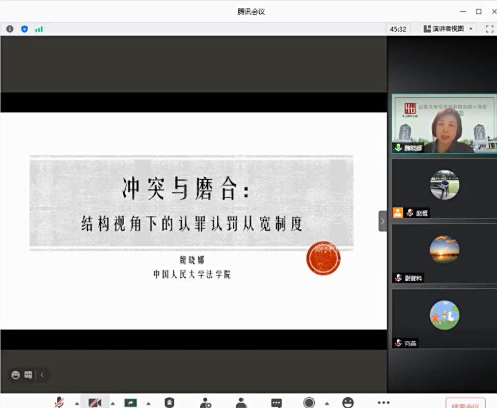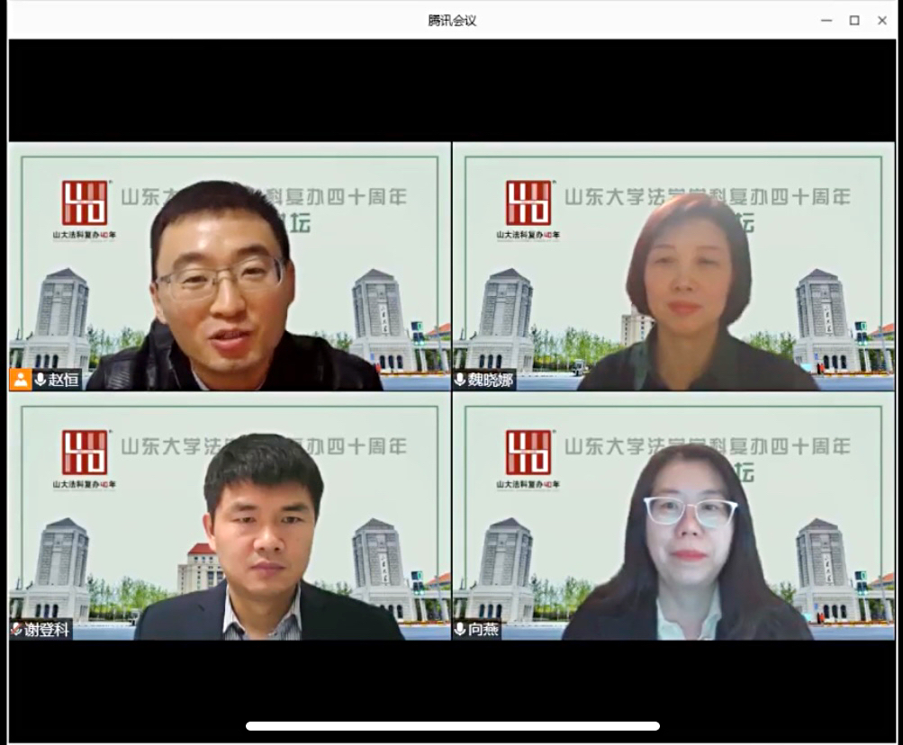 2020年11月10日晚,山东大学法学学科复办四十周年认罪认罚从宽制度系列论坛第二期于线上成功举办。本期论坛由中国人民大学金沙集团1862cc成色魏晓娜教授主讲,西南政法大学金沙集团1862cc成色向燕副教授与吉林大学金沙集团1862cc成色谢登科副教授与谈,金沙集团1862cc成色赵恒助理研究员主持。