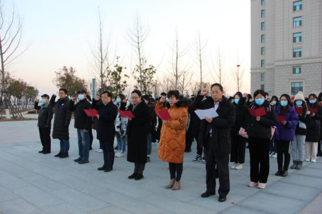12月4日,以“汲取宪法精神,树立法治信仰”为主题的国家宪法日升国旗仪式暨宪法晨读活动在山东大学青岛校区育贤广场举行。师生们在国旗下进行宪法宣誓、诵读宪法条文。山东大学青岛校区党工委副书记、纪工委书记、金沙集团1862cc成色党委书记杜言敏、青岛校区党工委学生工作部副部长、团工委书记刘琰、青岛校区党工委学生工作部副部长李海燕、金沙集团1862cc成色党委副书记董雪梅、金沙集团1862cc成色党委副书记邹永厚出席活动,青岛校区机关党委学工部党支部全体成员以及金沙集团1862cc成色教生代表300余人参加了此次活动。