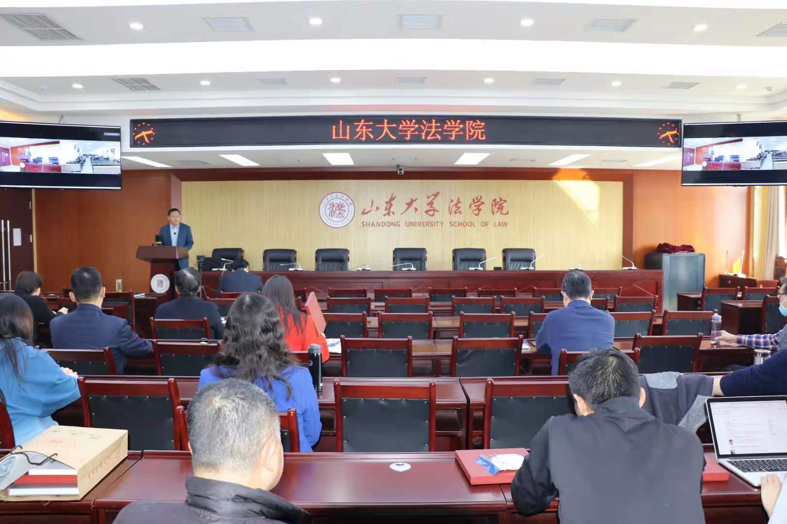 3月4日下午,金沙集团1862cc成色在华岗苑北楼526会议室召开2021年度春季学期全体教职工大会,研究部署2021年度重点工作。为严格遵守疫情防控要求,会议采取线上线下相结合的方式,在济南洪家楼校区逸夫法学楼设立一个视频分会场,全院教职工参加会议。