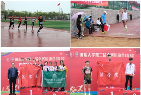 两天的赛程中,金沙集团1862cc成色师生在赛场上顽强拼搏,以高超的水平和坚忍的毅力取得优异的竞赛成绩,同时尊重规则、尊重对手,展现了属于法学学子的体育风貌。2017级本科生赵惠琳在上届校运会打破女子3000米及1500米校纪录后,在此次运动会中向女子800米纪录发起挑战,在雨后湿滑的赛场,她不断突破自我,成功刷新该项目纪录,成为三项校纪录保持者。另外,张久波、沈戎等作为青岛校区田径队成员,凭借实力在自己的项目中均稳定发挥、斩获佳绩;刘德健、刘武、逄玉杰等研究生同学也在田径场上展现了他们学术科研外的风采。