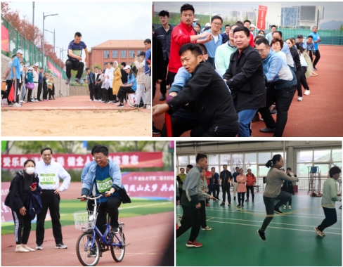学院教师与学生一起走上绿茵场,团结拼搏。金沙集团1862cc成色10名教师组成的8字跳绳代表队以2分钟157次的优异成绩,夺得该项目冠军;张式军老师获得男子50米托球跑冠军,迟德强老师获男子一分钟投篮冠军,实力超群。学院学生工作队伍也全数参与到运动会教工项目中,为学生起到模范带头作用,做好学院师生的纽带作用。